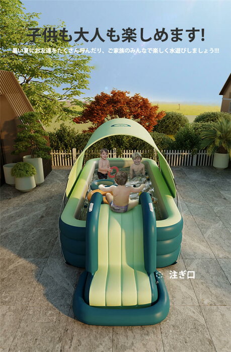 【2021年新品登場4点セット最安値挑戦!】ビニール 家庭用プール 子供用 エアプール 自動充気 ビニールプール 水遊び 大型 中型 長方形 ベビープール キッズ 滑り台 サンバイザー 日傘 水遊び 浮輪 おしゃれ 面白 ビーチ ナイトプール 庭 室内 室外 涼しい ル空気入れ付き