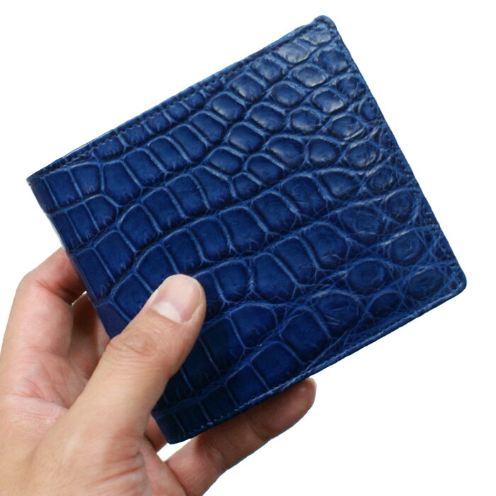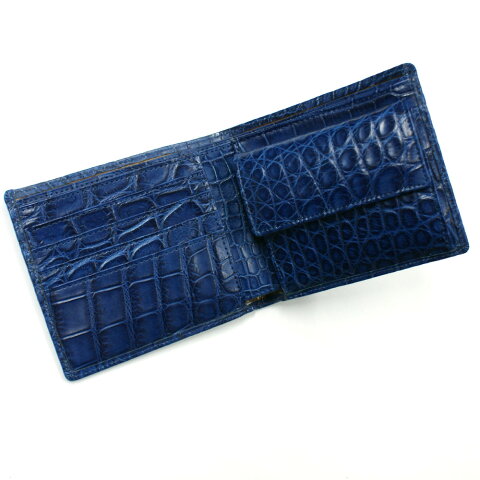 財布 二つ折り財布 メンズ レディース 折り財布 革財布 無双 札入れ 本革財布 クロコダイル革 財布 鰐 クロコ ボックス型 小銭入れ付 カード収納 藍染