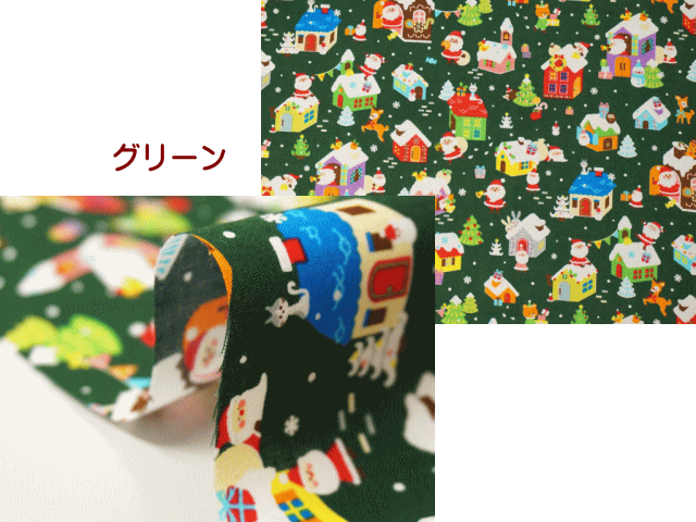 ラミネート 生地 クリスマスハウス 手芸ラミネート生地 (クリスマスハウス) クリスマスシーズンにぴったりの サンタさんとかわいい動物たちのラミネート生地♪